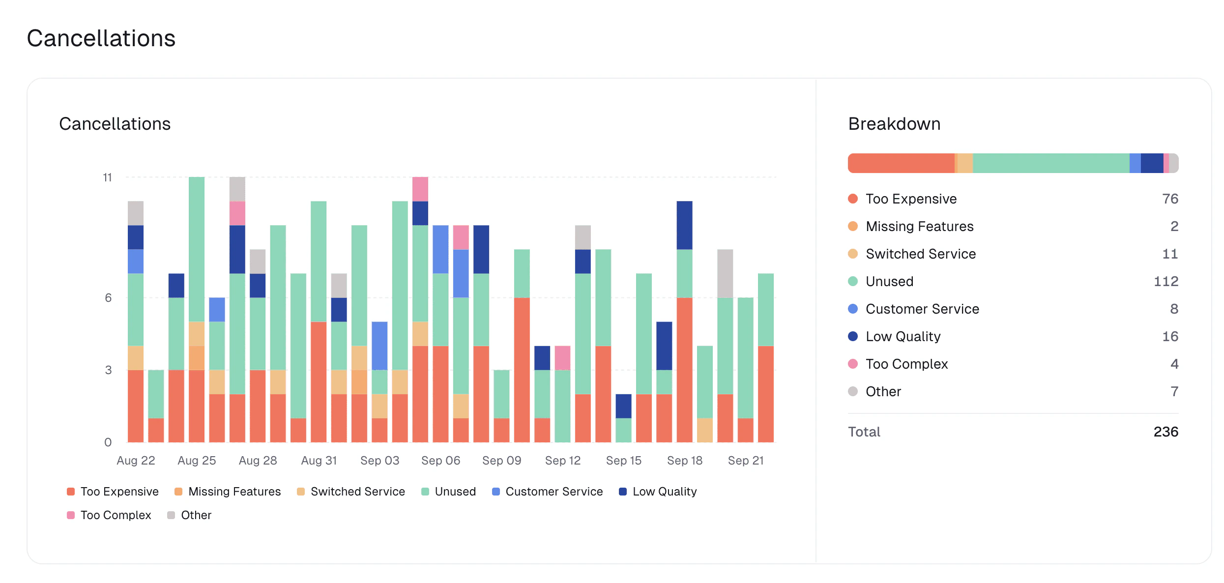 We’ve added detailed cancellation metrics, giving you clearer insights into subscription cancellations and their impact on your business performance.