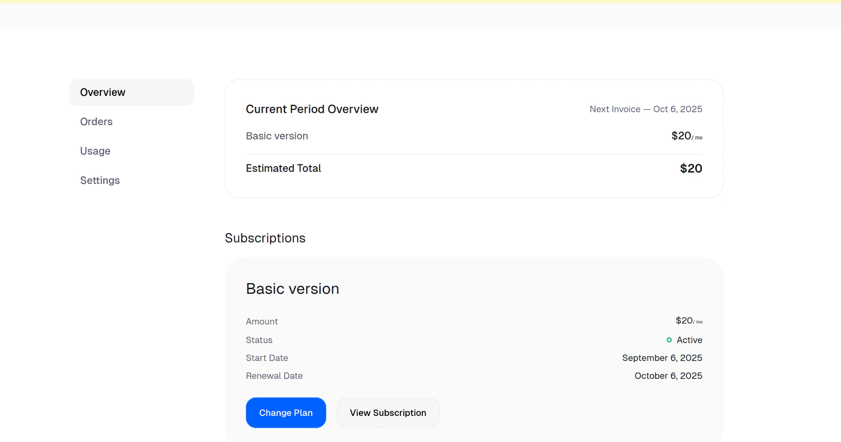 Note that merchants can disable customer-level upgrades or downgrades in the portal by toggling OFF Allow price change setting.